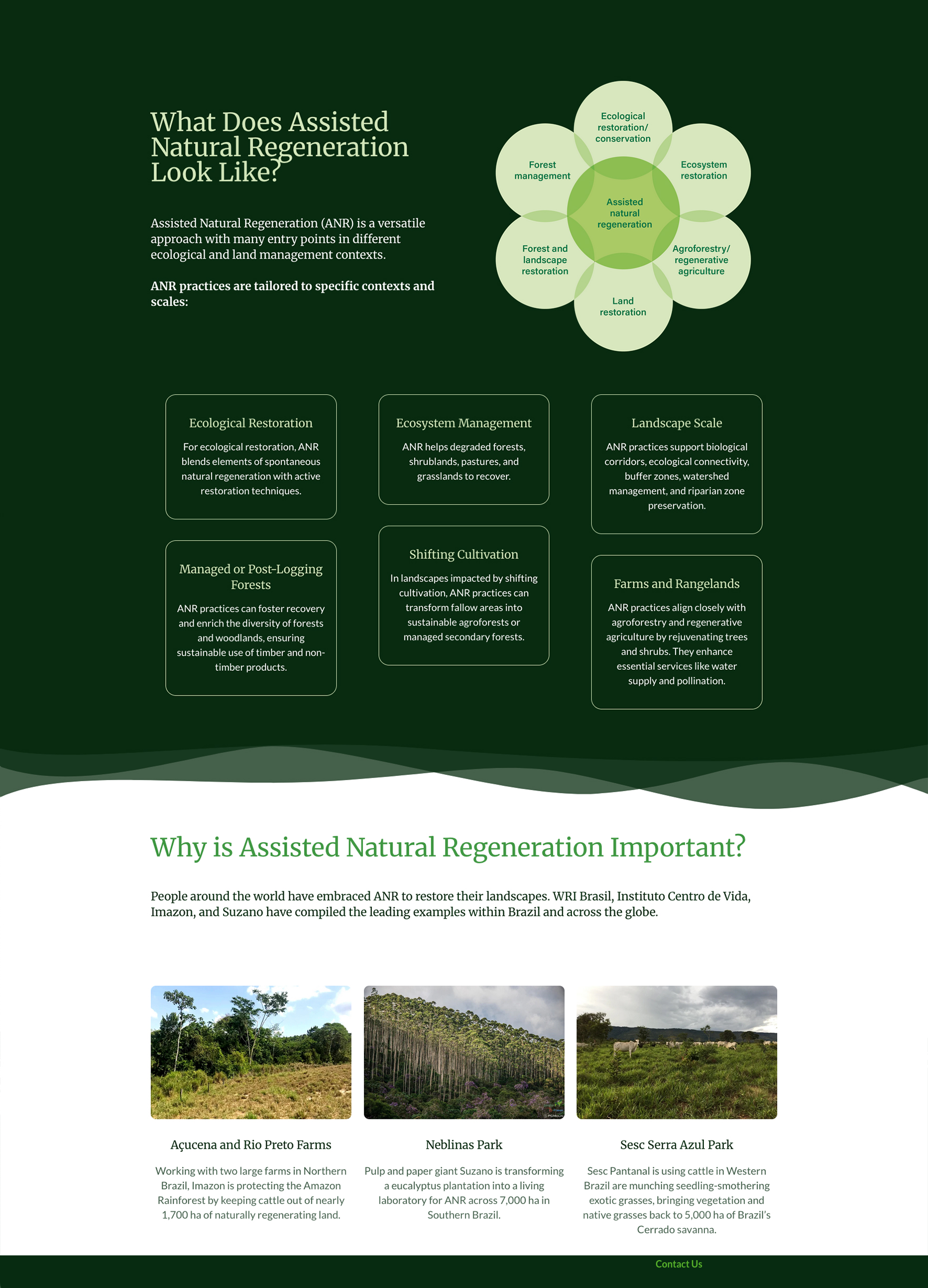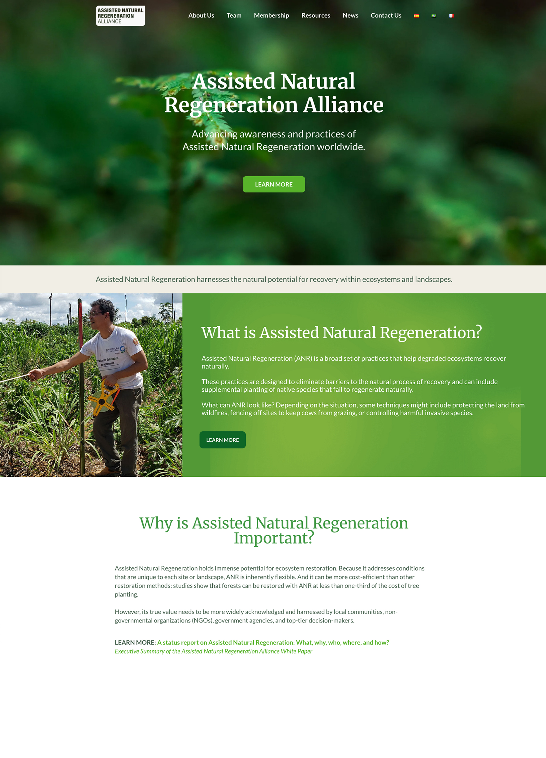 Kelly Design recently completed a website makeover for the Assisted Natural Resource Alliance. The site was built on the Wwrdpress platform and was translated into three languages; French, Spanish and Portuguese. The Assisted Natural Regeneration (ANR) Alliance is an international coalition of practitioners, researchers, decision-makers, organizations, and funders. It was created in 2022 with the support of World Resources Institute Brazil1, Instituto Centro de Vida, Imazon, NICFI and Suzano. Assisted Natural Regeneration harnesses the natural potential for recovery within ecosystems and landscapes.
